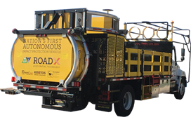 Kratos’ Autonomous Truck-Mounted Attenuator, a driverless TMA used during road construction and highway maintenance vehicles, shields workers and equipment ahead from errant drivers entering the work zone. Hundreds of lives are lost in the